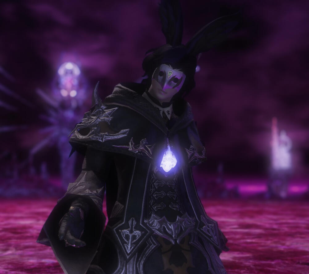 VOICE CLAIM: Sin's voice claim is complicated. He sounds like Terrance Zdunich (but British). His intonations always make him sound really, really bored - regardless of how he's feeling.MANNERISMS: He talks with his hands. A lot. One day he'll smack the wrong person in the face. Not that he'll actually stick around to face the consequences.APPEARANCE:The form you recognize as "Sin" appears to be an unusually tall male viera (6'10").His eyes are deep red, like freshly-shed blood. Underneath them, the skin is bruised and discolored, similar to the appearance of one who never sleeps a full night's rest. This, one would think, is unusual - for those eyes are so sharp.Sharp... such is his nose - a strong Roman point. This is a trademark feature of his.He wears anything that he deems physically comfortable. This leads him to possess many a robe and other such baggy attire.He can also often be found wearing a black mask that hides his face. Not always, but it's pretty common. Also, those pointy finger gloves that ascians seem to love so much.Like all other ascians, he does not have a shadow in any form.PHILOSOPHY AND IDEALS:You paid attention to the home page of this site, right? Sin takes his proselytizing very seriously. He actively seeks to sway people into serving Zodiark and into supporting the "ascian agenda."SPOILERS FOR ENDWALKER (highlight the area below to see text):